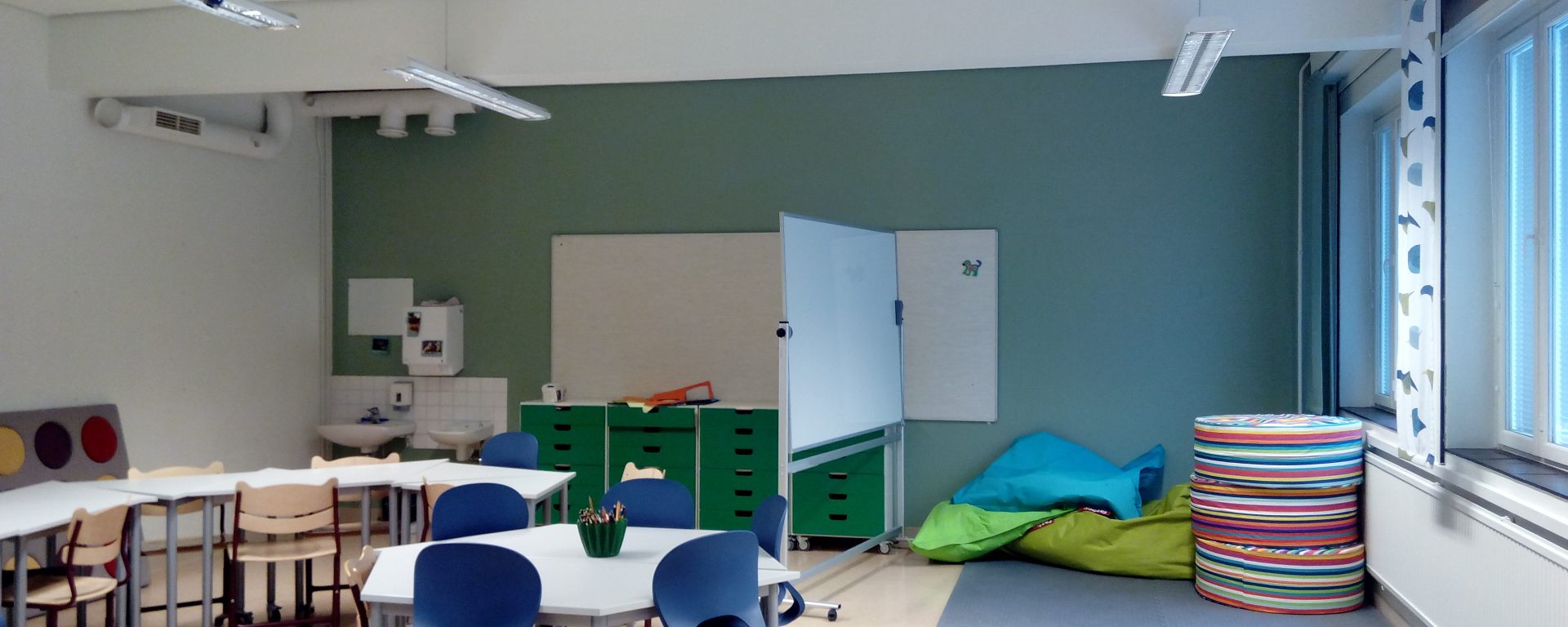 To jedna i ta sama lekcja matematyki. 55 uczniów pod wodzą trzech nauczycieli. Większość pracuje przy stolikach, garstka na pufach i podłodze, a kilka osób wymagających wsparcia w innym kącie wielkiej sali. Tak, jak pisałam wcześniej, każdy z nas ma inne potrzeby i style uczenia się. Fińska szkoła radzi sobie z tym wyzwaniem poprzez eksperymentalną organizację pracy i przyjazną aranżację przestrzeni.