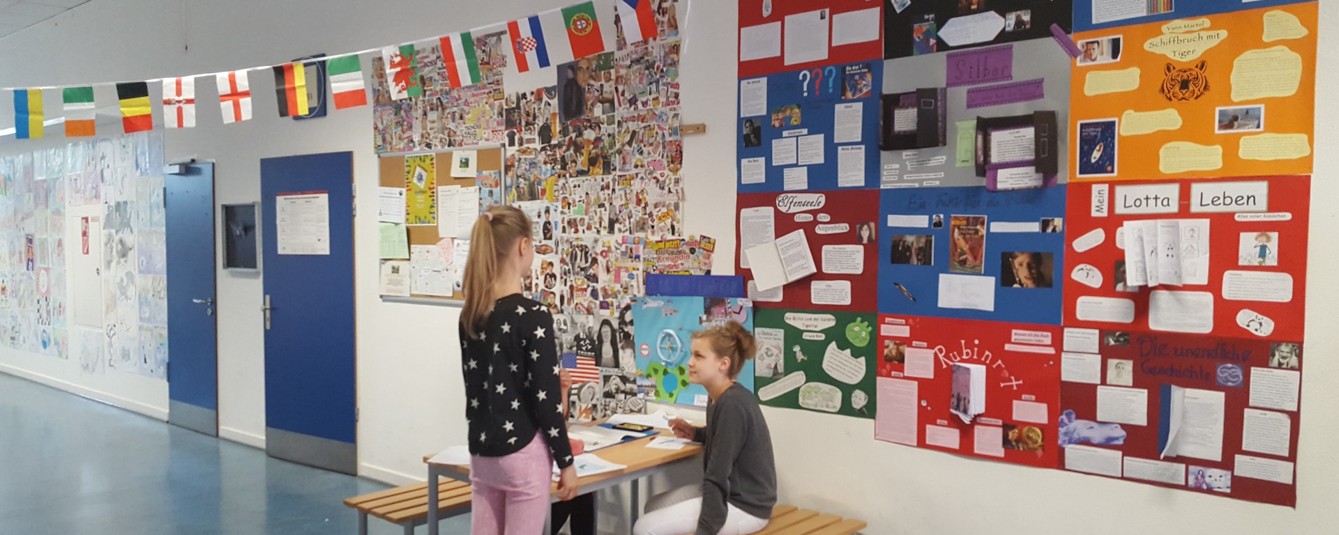Razem z Susanne ruszamy na piętro zajmowane przez poziom szósty. Jest to o tyle ważna informacja, że w zasadzie każde piętro pierwszego budynku zajmowane jest przez inny rocznik, a wychowawcy klas tworzą blisko współpracujący ze sobą zespół, w tym wypadku bodajże 6 osób. Kiedy przybywamy na piętro w każdej z sześciu sal zaczynają się lekcje SOL (Selbst organisiertes lernen/Self organized learning/Samodzielnie zorganizowane uczenie). W klasie Susanne każdy uczeń może wybrać, czy uczy się dzisiaj angielskiego czy matematyki, saodzielnie wybiera również miejsce nauki – może to być stół, podłoga, pufa, ławka na korytarzu, specjalna sala do nauki, klasowa antresola, a nawet parapet. Ważne, by samodzielnie zaplanować w specjalnym szkolnym zeszycie (Logbuch), co zamierzamy dzisiaj zrobić i jaki osiągnąć cel. Uczniowska praca również znajduje się we wspomnianym notatniku. Co ciekawe, drzwi pięciu z sal są otwarte, uczniowie swobodnie się przemieszczają, miksują z młodzieżą z innych sal, pracują indywidualnie lub w parach – ogólnie czuć ducha pracy i zaangażowania. Na zakończenie zajęć uczniowie dzielą się w kole tym, co zrobili.
