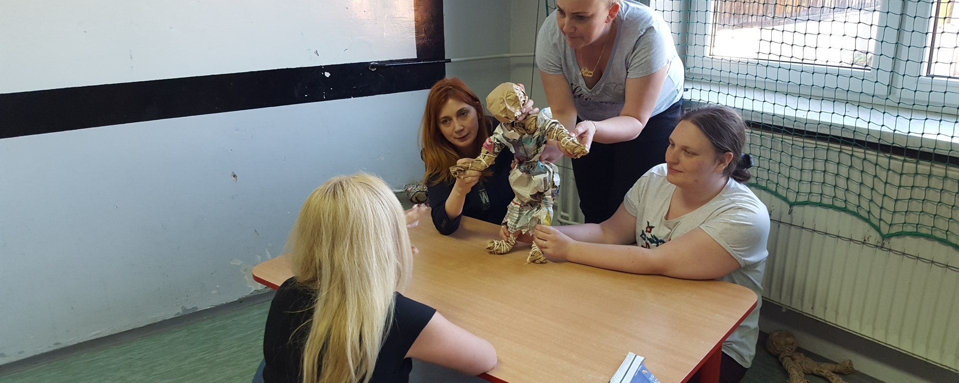 Pierwszy etap tworzenia lalki polegał na przygotowaniu papieru poprzez jego zgniatanie, ugniatanie i ogólne „wymęczenie”. Ile hałasu i zabawy mieliśmy przy tym, aż trudno opisać! Następnie według wskazówek Marii Schejbal po kolei wykonaliśmy głowę lalki, owijając ją kawałkiem papieru, potem mocno przewiązaliśmy szyję, a następnie przygotowaliśmy górne i dolne kończyny lalki – powoli skręcając papier w dwa „powrozy” i mocując dzięki sznurkowi tak, by tworzyły ciało.