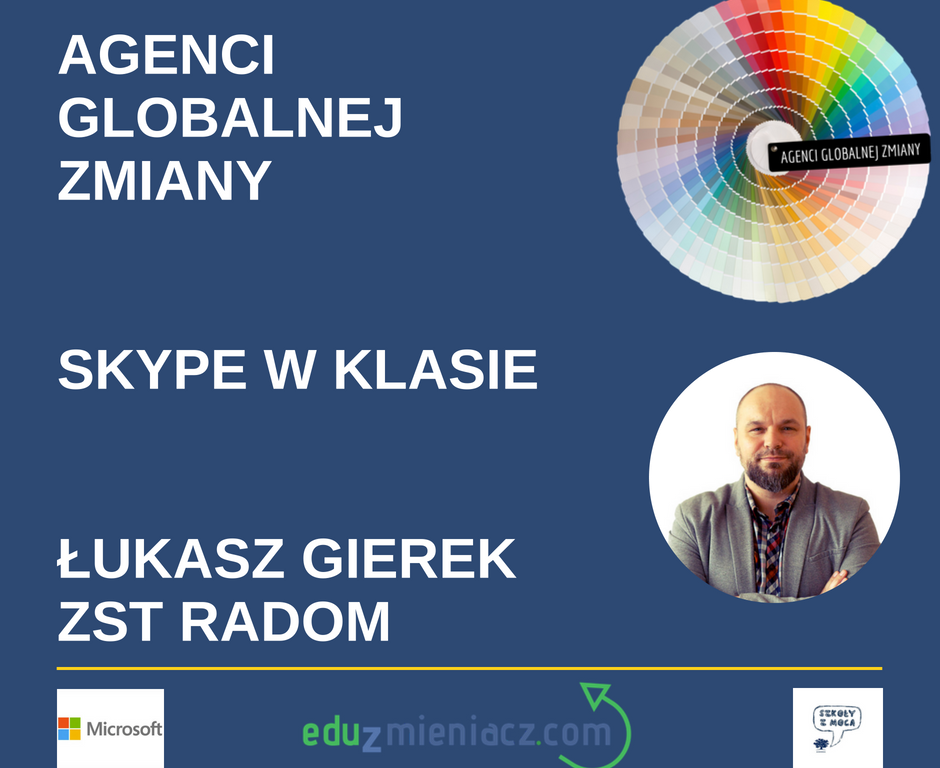 W roli eduinspiratora wystąpił tym razem Łukasz Gierek – Microsoft Innovator Educator Expert z ZST w Radomiu, który podzielił się inspiracjami i możliwościami, które daje Skype w klasie.