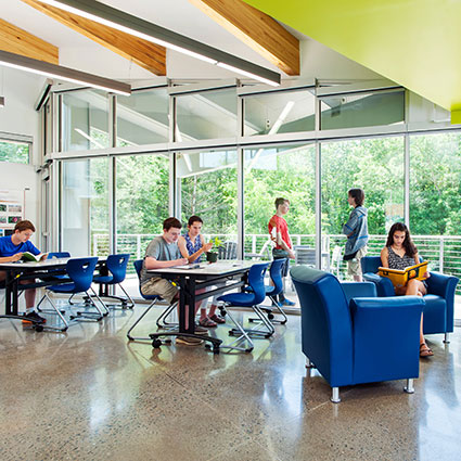 7. Aktywne środowisko uczenia się (różnorodna przestrzeń – wysokość, światło, struktura; miejsca do siedzenia i pracy badawczej, a także dla mieszanych rocznikowo uczniów).