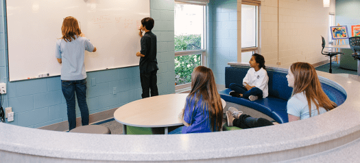 - blended learning przestrzeń, gdzie mieszają się różne meble dostosowane do odmiennych potrzeb uczniów,