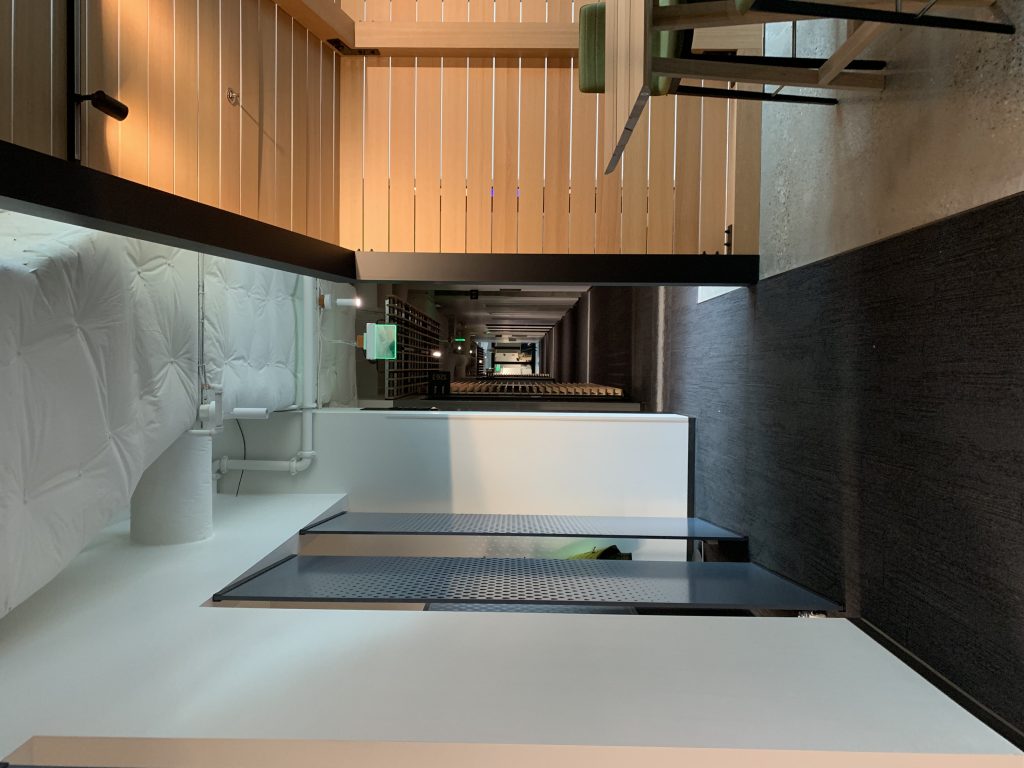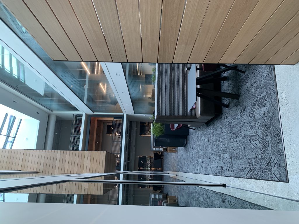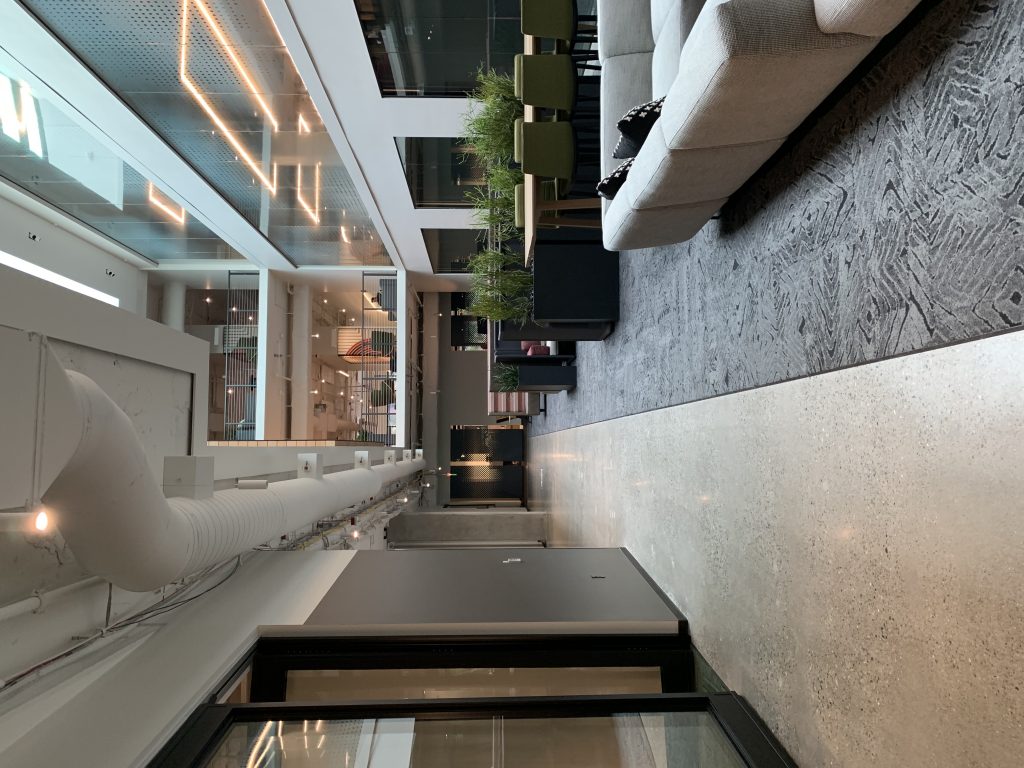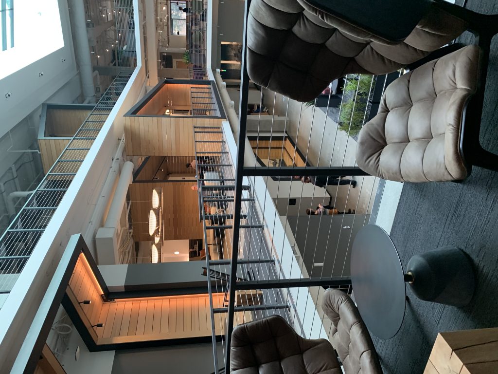 Na początek zdjęcia z czterech budynków smart, gdzie technologia służy komfortowi jej użytkowników. Wszystkie zaprojektowane z myślą o dostępności dla wszystkich, w tym osób niepełnosprawnych, z ważnym miejscem – recepcją, ale, jak opowiadał nasz przewodnik, to nie recepcjonista siedzi po drugiej stronie, a konsjerż służący pomocą każdemu, kto przyjdzie.