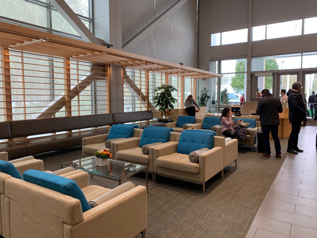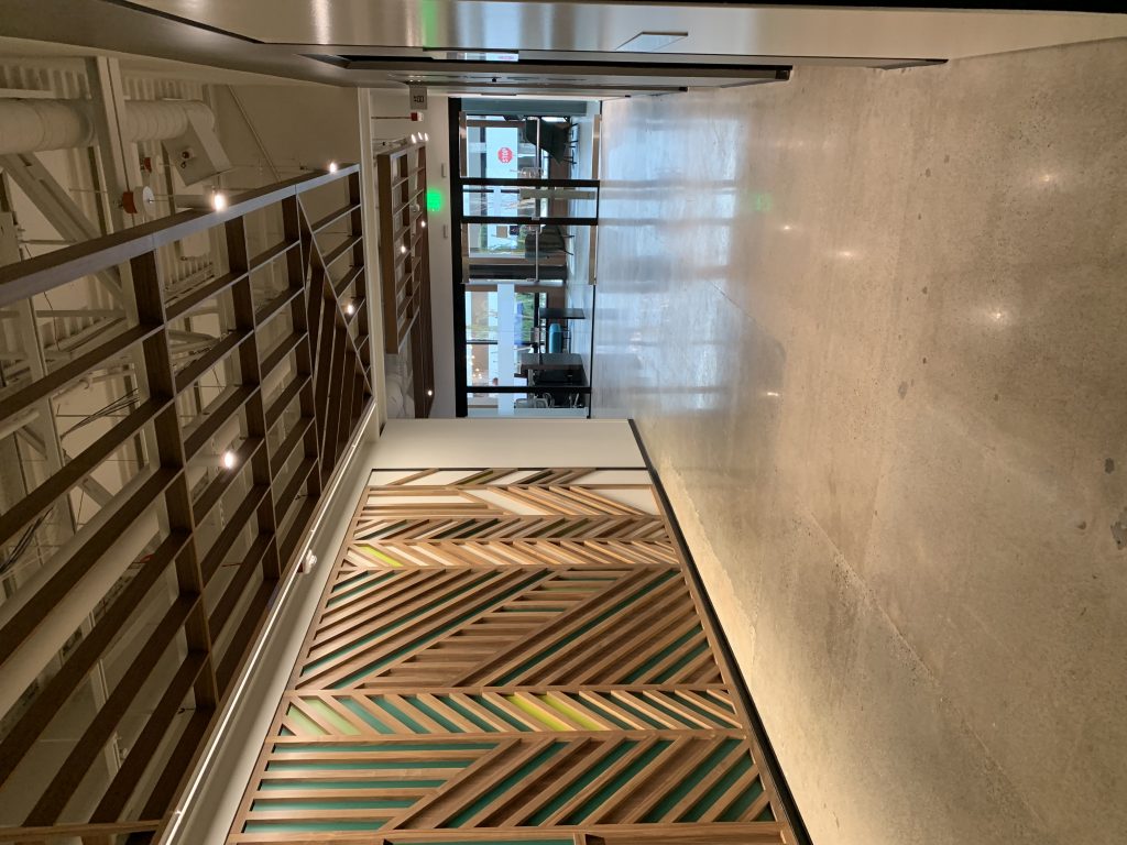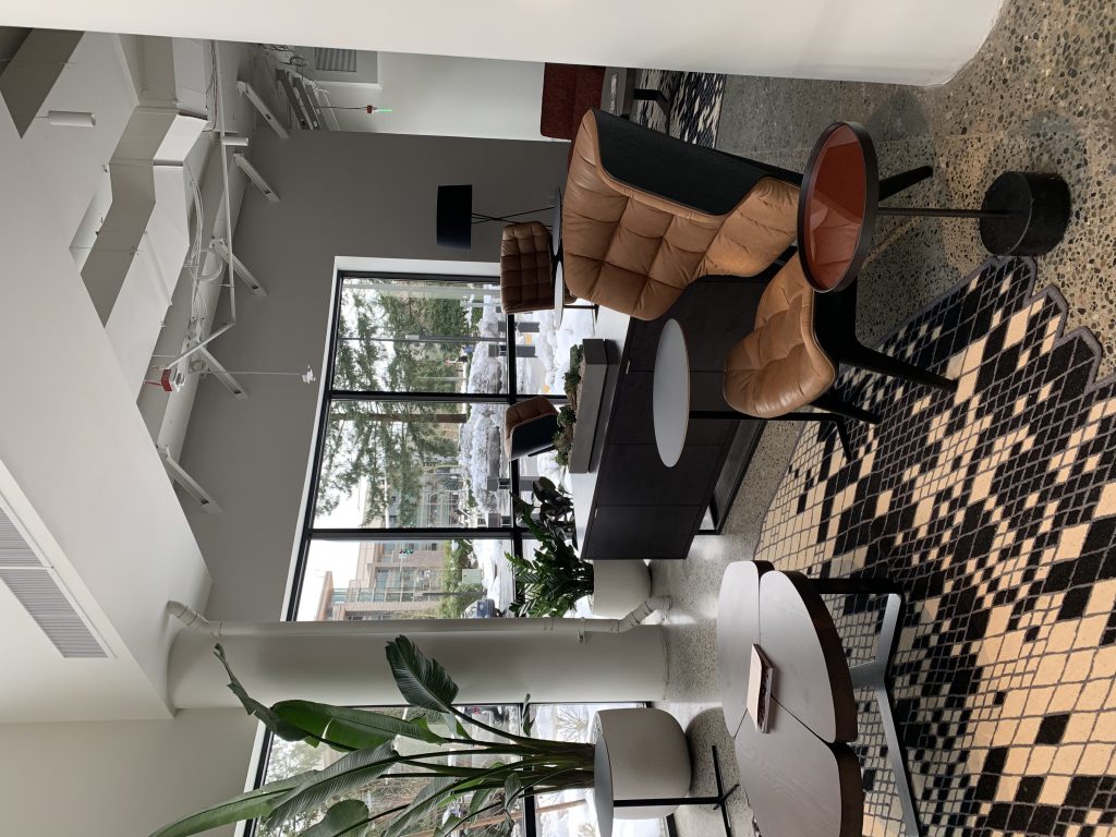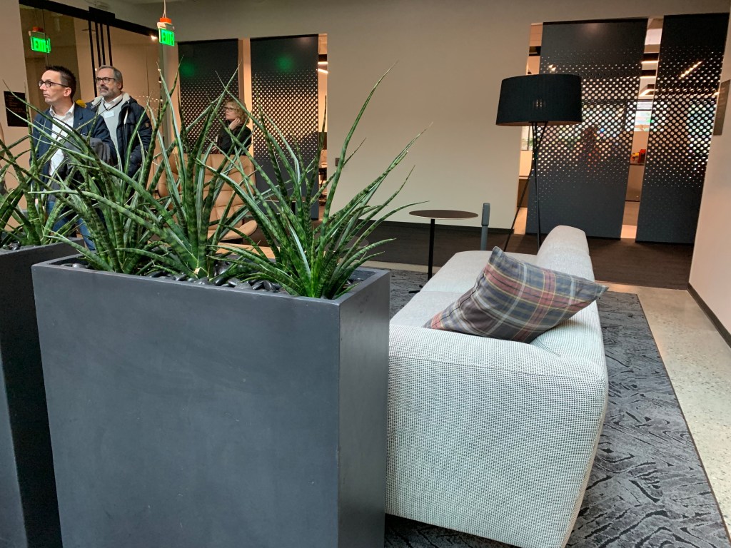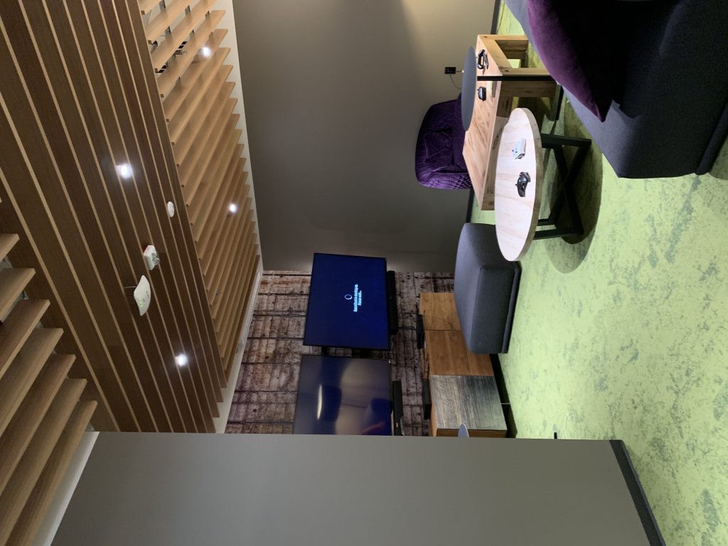 Na początek zdjęcia z czterech budynków smart, gdzie technologia służy komfortowi jej użytkowników. Wszystkie zaprojektowane z myślą o dostępności dla wszystkich, w tym osób niepełnosprawnych, z ważnym miejscem – recepcją, ale, jak opowiadał nasz przewodnik, to nie recepcjonista siedzi po drugiej stronie, a konsjerż służący pomocą każdemu, kto przyjdzie.