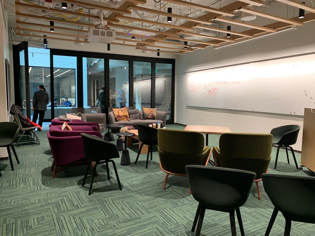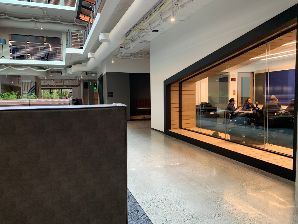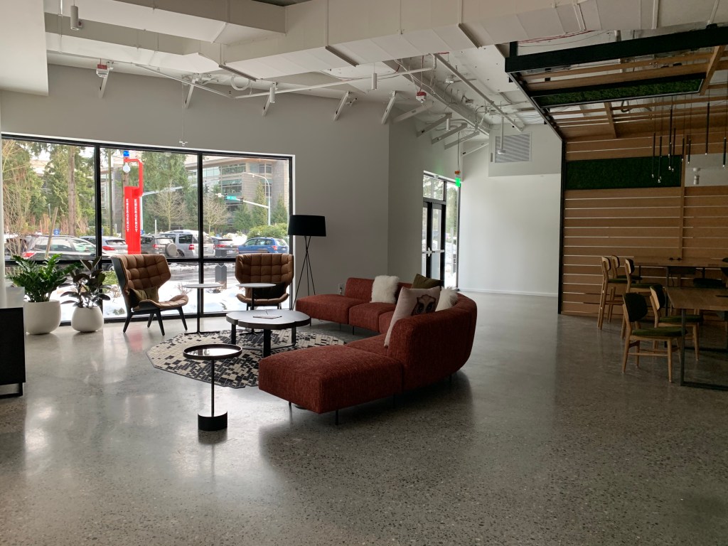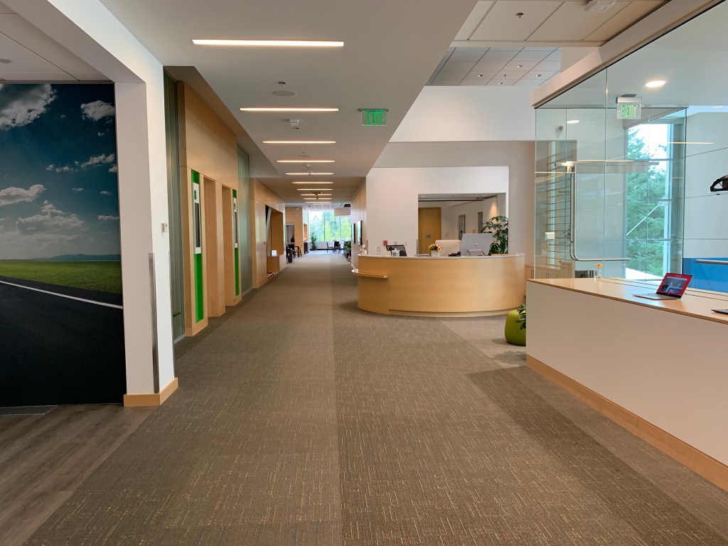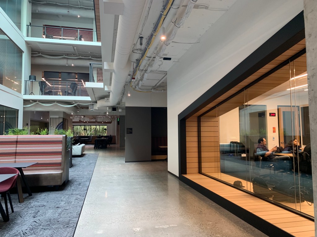 Przestrzeń Campusu Microsoft w Redmond to niezwykle inspirujące miejsce. Dostosowana do różnych potrzeb – pracy w zespole, spotkań oraz dla indywidualistów, którzy potrzebują oddechu od innych. Znajdziemy tutaj pokoje służące zabawie i relaksowi, a także te zakątki, gdzie spokojnie można coś zjeść.