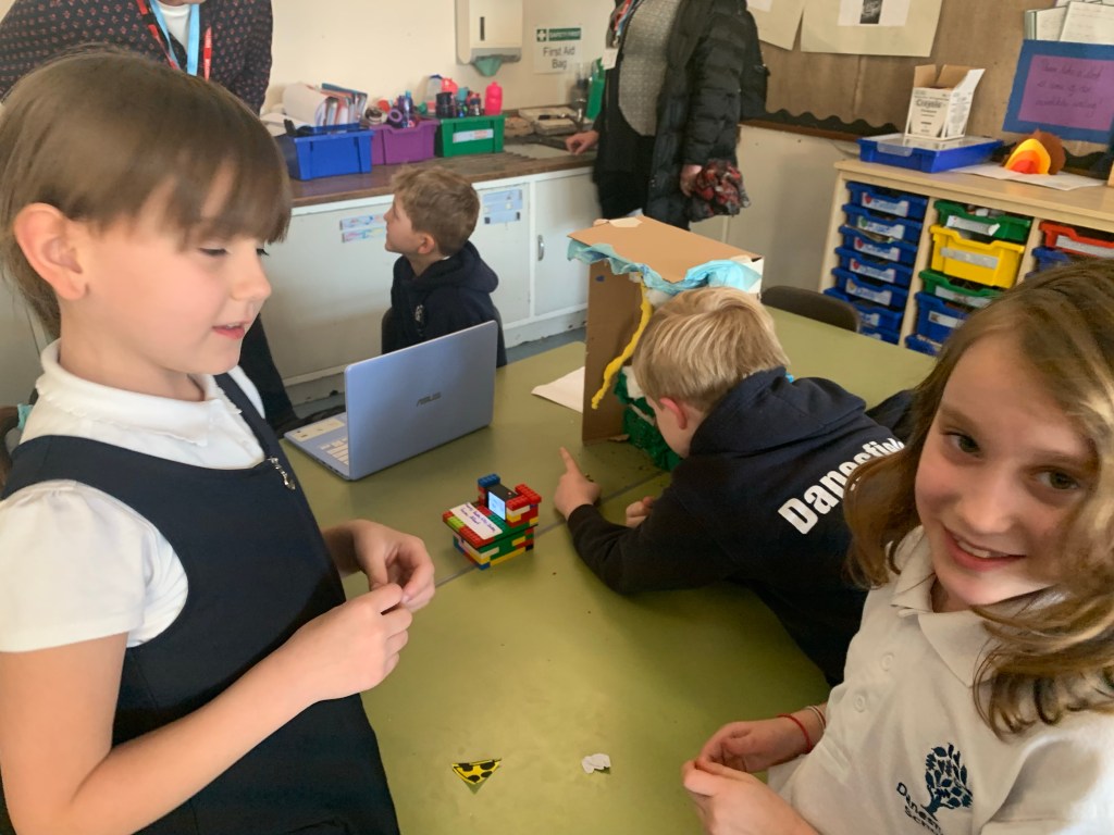 - tworzenie filmów „stop motion” z klockami Lego w roli głównej – w oparciu np. o mitologię, gdzie każdy stolik tworzył odmienną część wspólnej historii – jeden wprowadzenie, drugi tę, gdzie bohater przeżywał rozterki, kolejny punkt kulminacyjny, inny szczęśliwe zakończenie. Przy okazji dzieci tworzyły instrukcję w Sway’u – podpowiedzi dla tworzących filmy „stop motion”.