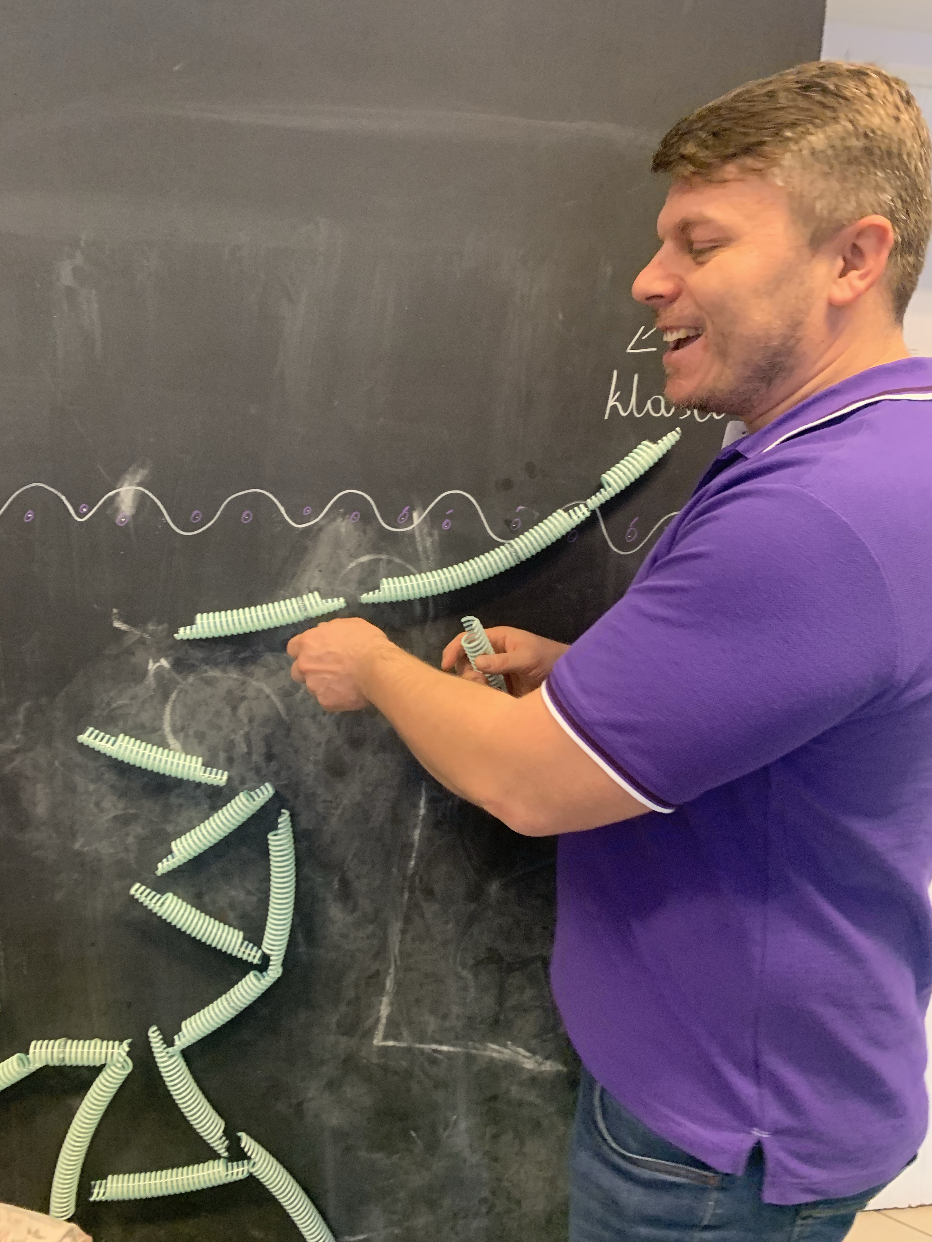 Adama poznałam półtora roku temu dzięki ówczesnej pani kurator Monice Kończyk, na I edukacyjnym hackatonie. Energia, odwaga, charyzma – to cechy widoczne na pierwszy rzut oka. Jeszcze wtedy nie wiedziałam, że jego pasją są przestrzenie edukacyjne. O tym przekonałam się pół roku później, odwiedzając szkołę, której przewodzi.