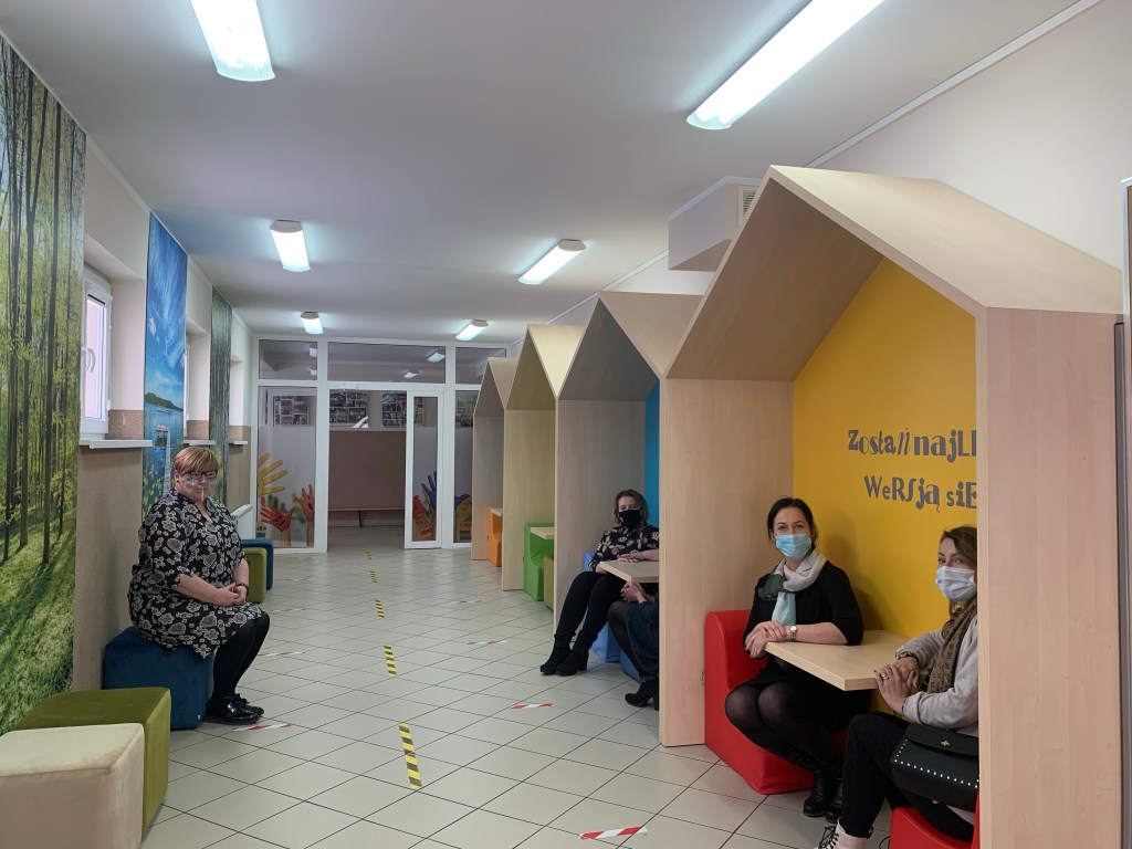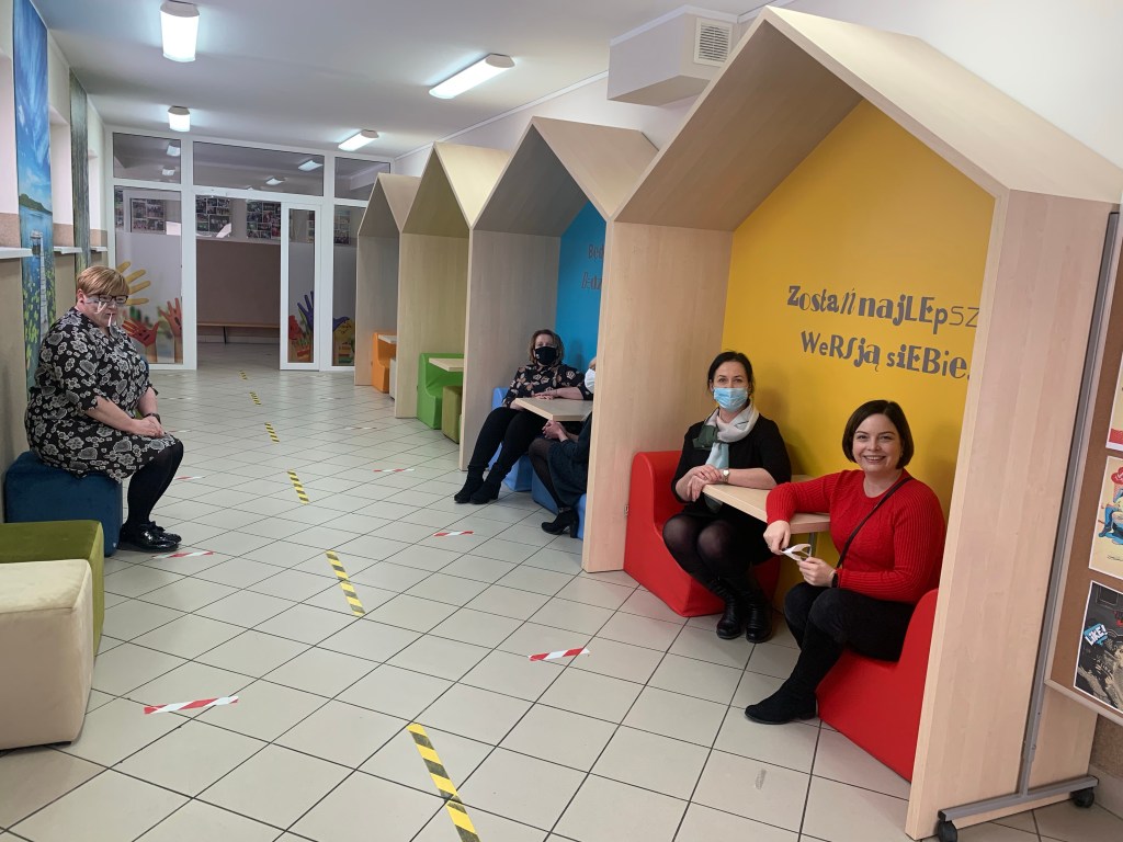 Ponad stuletni budynek Szkoły Podstawowej nr 1 w Ostródzie z zewnątrz wygląda majestatycznie. Uroku dodaje mu otoczenie zieleni, szczególnie starych drzew. Dziś mogę sobie tylko wyobrazić, jak pięknie musi tu być latem. Myślę o tym szczególnie wtedy, gdy razem z Panią Dyrektor Agnieszką Jankowską spoglądamy na przyszkolny teren przez okna położonej na poddaszu sali konferencyjnej, dziś nazwanej „salą z duszą”. Do Ostródy przywiodła mnie chęć spotkania z Panią Dyrektor i Nauczycielami zaangażowanymi w projekt „Szkoła dla innowatora”, wsłuchanie się w ich doświadczenia oraz podpatrzenie rearanżacji przestrzeni, w której wspierał zespół Dyrektor SP 27 w Gdańsku Adam Perzyński. Kiedy wreszcie wrócą uczniowie, nie tylko odnajdą odmienione miejsca, będą mogli także zaplanować i wdrożyć właśne propozycje w życie, korzystając z Budżetu Uczniowskiego, nowego projektu realizowanego przy wsparciu Rady Rodziców.
