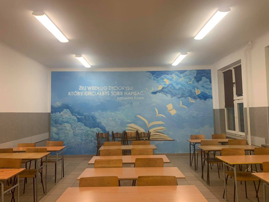 Estetyczne od samego wejścia do szkoły – obejmują przestrzeń informacyjną oraz tę służącą socjalizacji. Dyskretnie ukazują część historii oraz tożsamości szkoły.